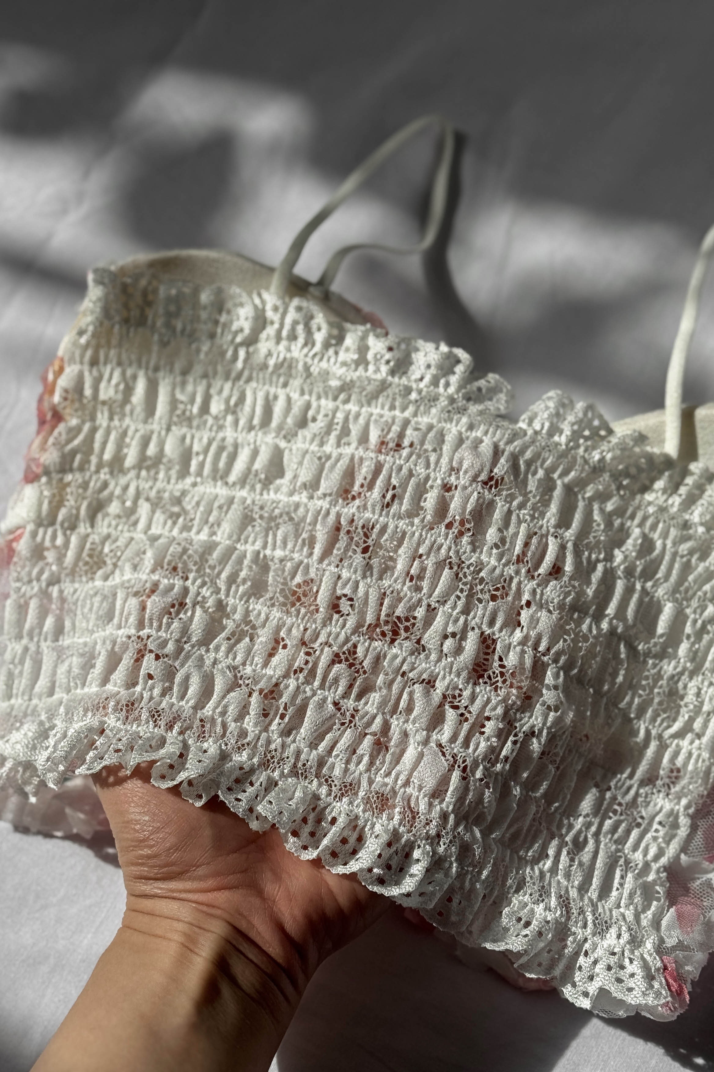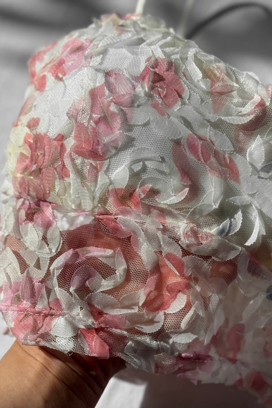 گلبرگ های کار شده روی این کرتپ به صورت تور های ظریف هست که نمای فوق العاده جذاب و زیبایی داره.