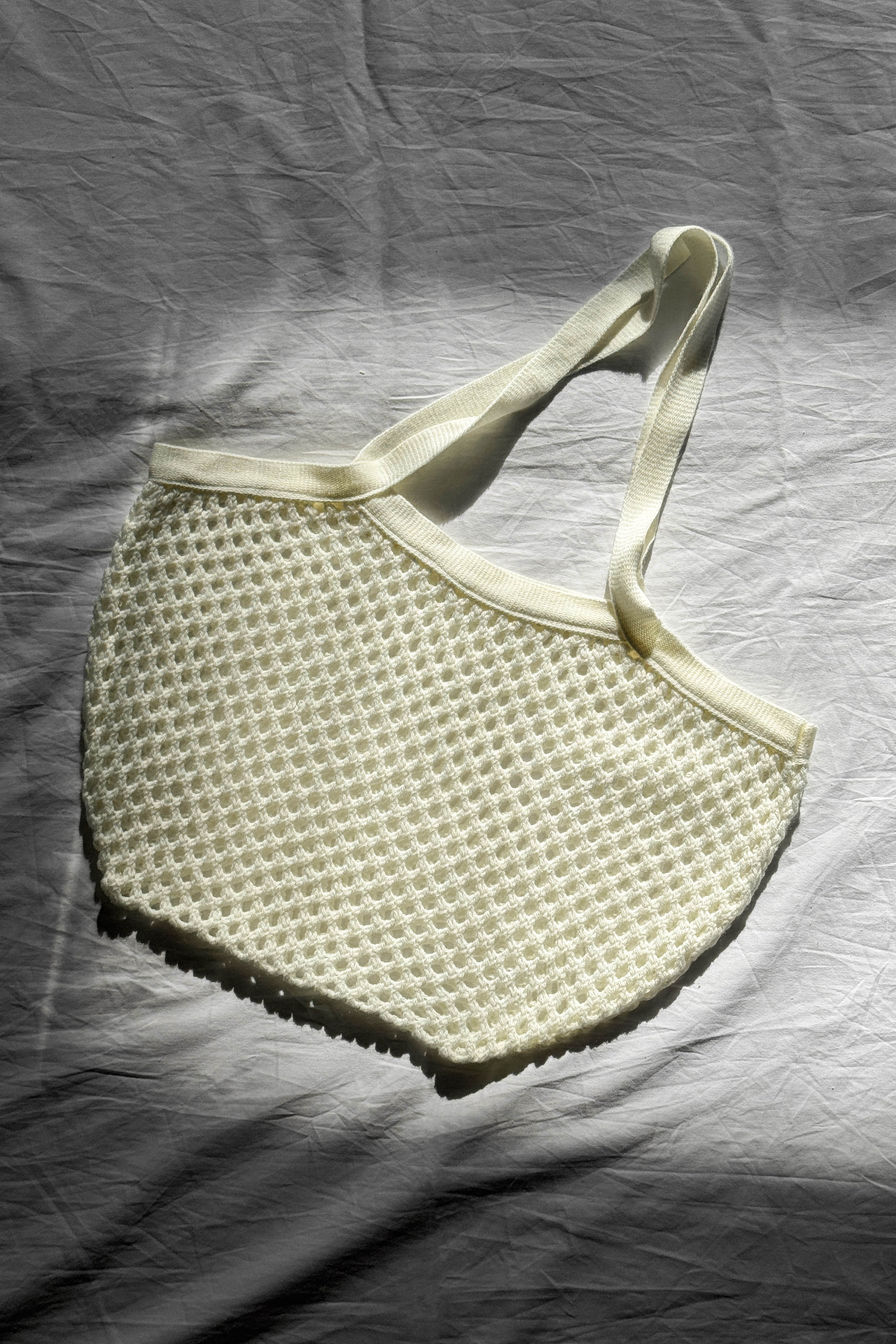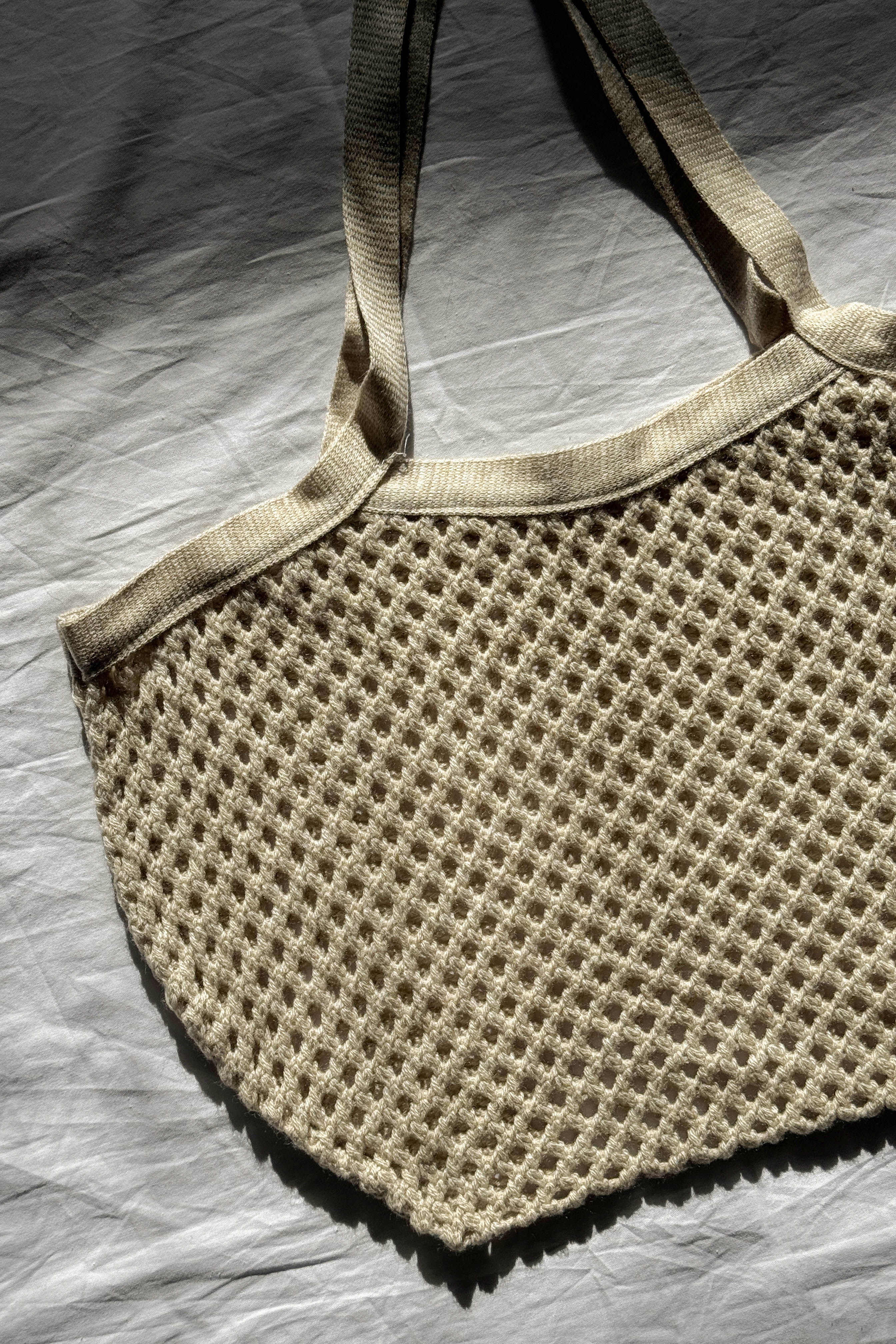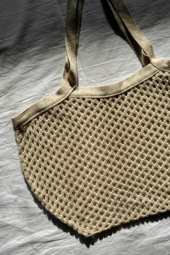 این توت بگ قلاب بافی بسیار نرم و لطیف هست و به دلیل حفره هایی که داره، از دور یه نمای ریز از وسایل و رنگ های توی کیفتون رو نشون میده که بسیار شیک و زیبا به چشم میاد.