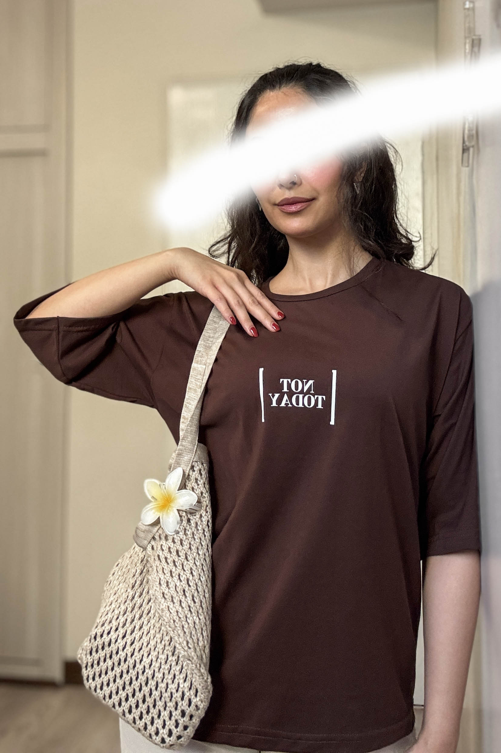 تیشرت نخ پنبه زنانه not today مدل باکسی