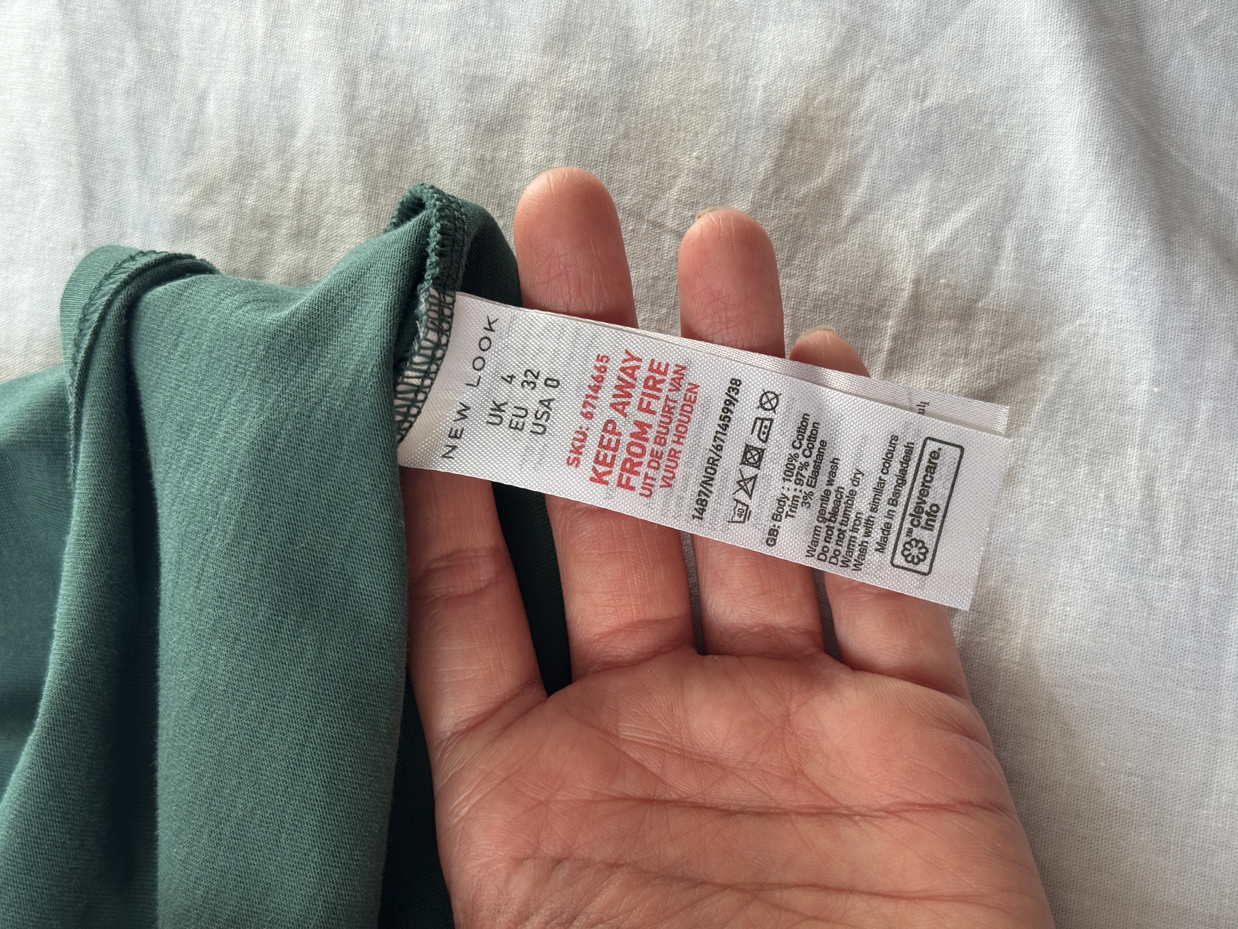 جنس آن پنبه و قابل اتوکشی با دمای متوسط، شستشو با ماشین لباسشویی و دست (دمای ۴۰ درجه) می باشد.