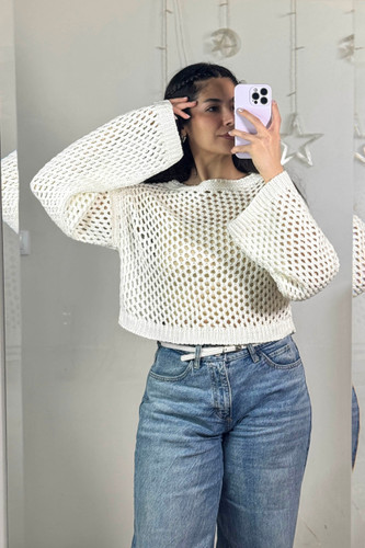 کراپ زنانه قلاب بافی نرمینه آستین بلند